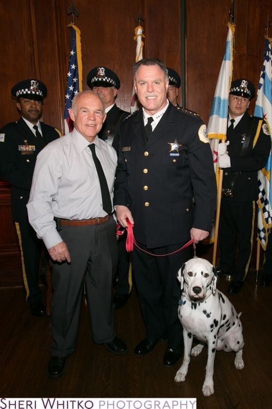 After Tom Cashman and Jim O’Connor presented awards to various Police and Fire Department personnel, Police Superintendent Garry McCarthy narrated the remarkable actions of Sergeant James D. Cascone, who was rewarded with a plaque, a watch, and a medal. The F.B.I.’s division in Chicago was well represented by Matthew Desarno, who emphasized the valiant efforts of Special Agents Walker, Stakem, Osborne, and Bloss to this captive crowd. These four F.B.I. Special Agents heroically stopped a bank robbery (while in progress) in Richmond, IL and were rewarded in the same manner as James Cascone. Not to be overshadowed was the Chicago Fire Dept., with Commissioner Jose Santiago acknowledging Captain Mauricio Rodriguez and Captain Kiefer for their exceptional service at the 2014 Valor Awards.