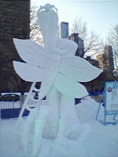 Creating exquisite statues out of mounds of snow and ice is no easy task; yet these outdoor artisans rose to the challenge with Lake Michigan in the background and wind whipping off the lake, dropping the thermometer below zero for several days leading up to the public exhibit.